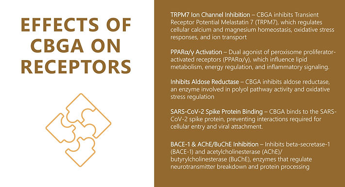 Anti-Inflammatory & Pain Relief — CBGA interacts with COX enzymes involved in the inflammatory cascade, offering a natural complementary option for patients managing chronic pain or inflammatory conditions.